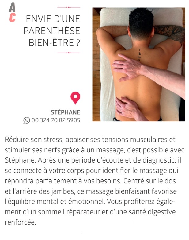 I am practician in energy massage, with the capacity to feel the vibrations of the body in its mains and arms. This is why, during the session, thanks to the contact on you with my hands and arms, I ask your body in order to know where and how the massage should be done.